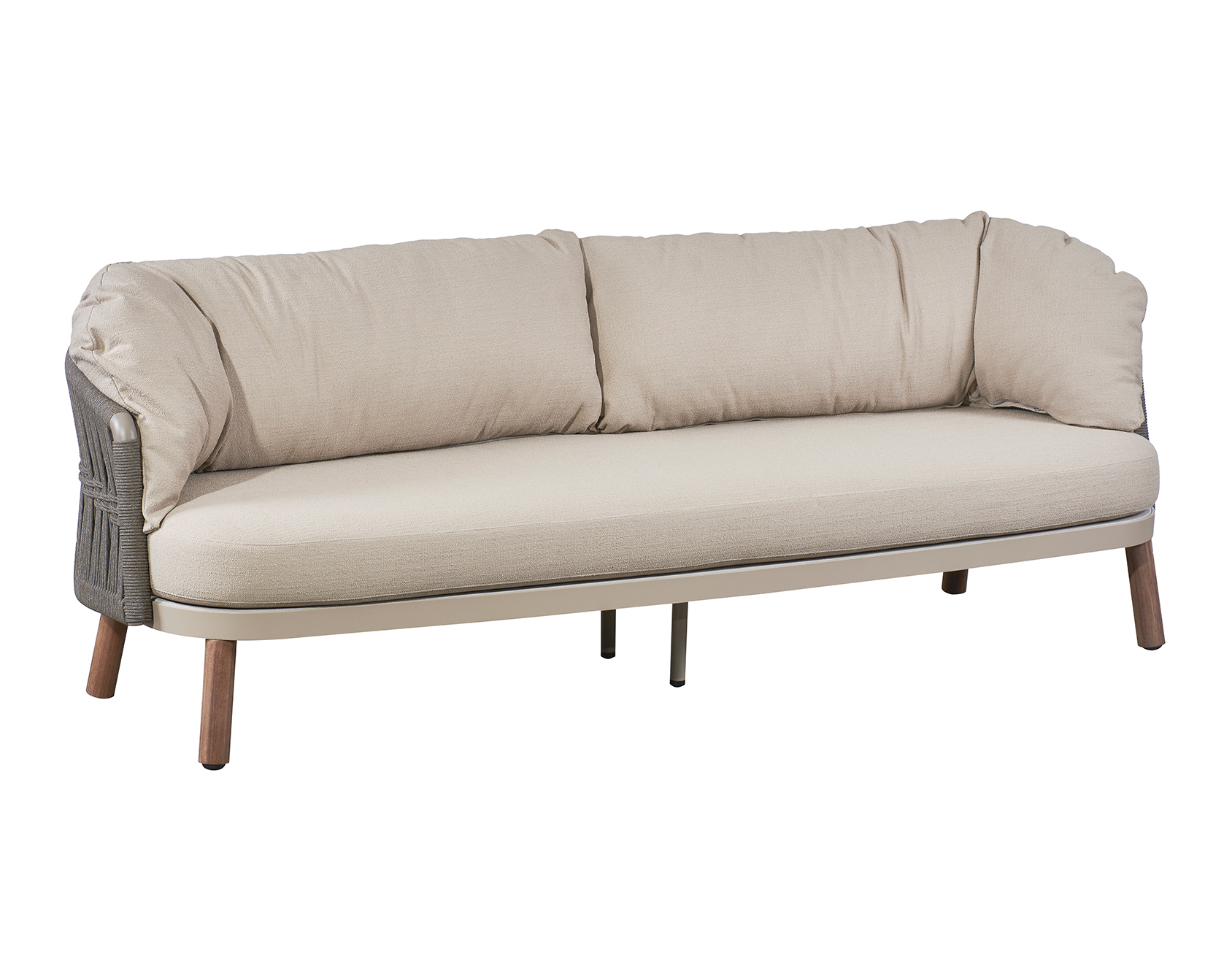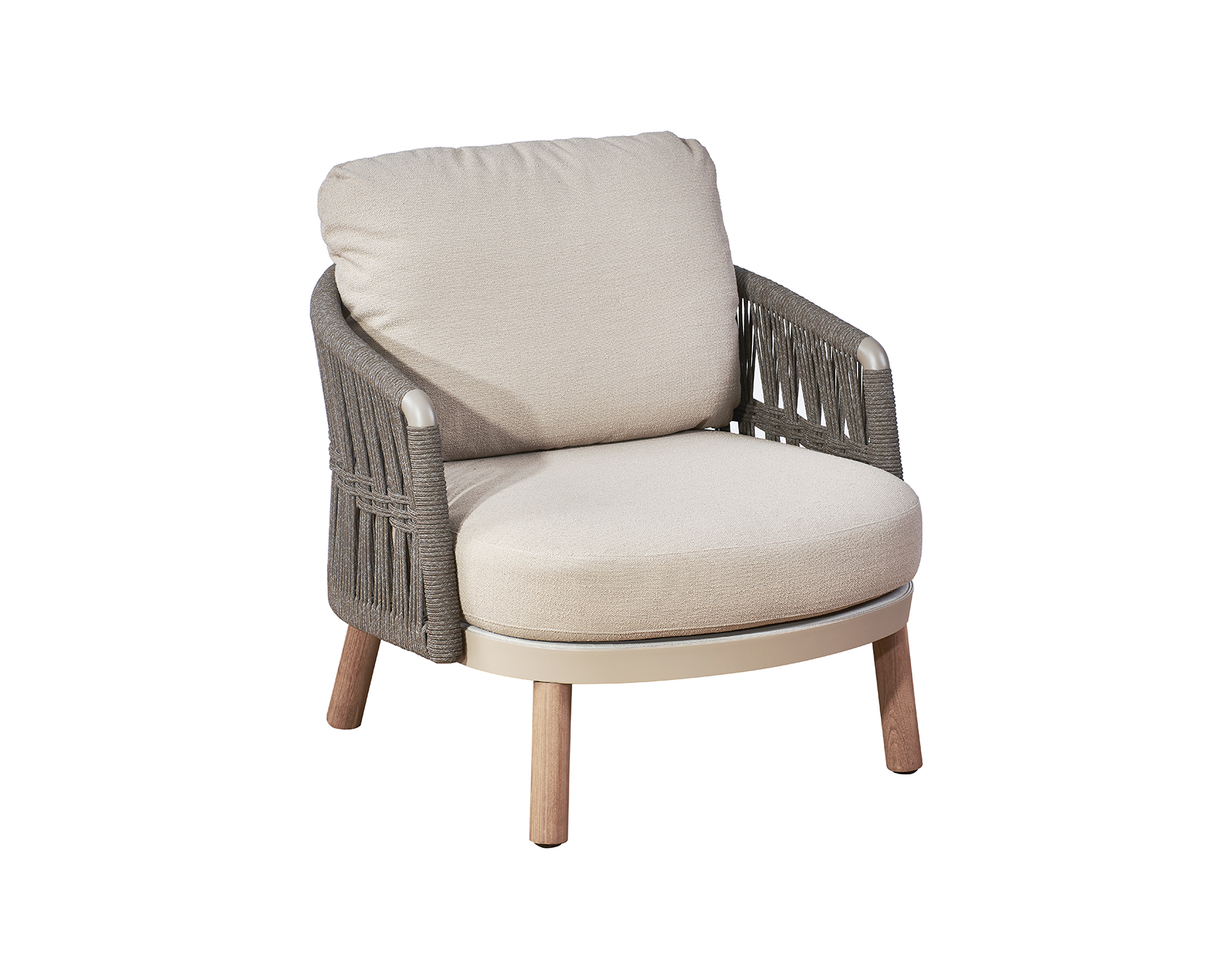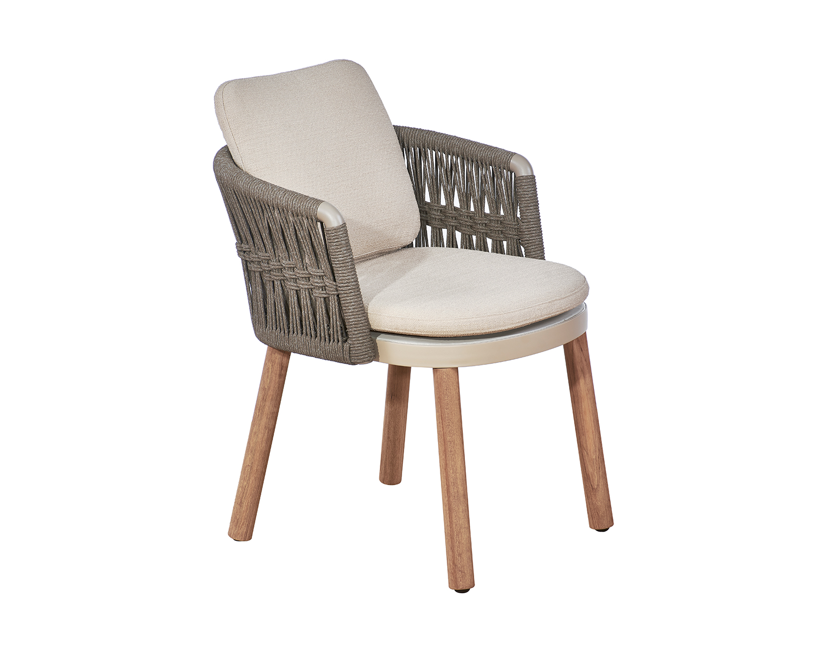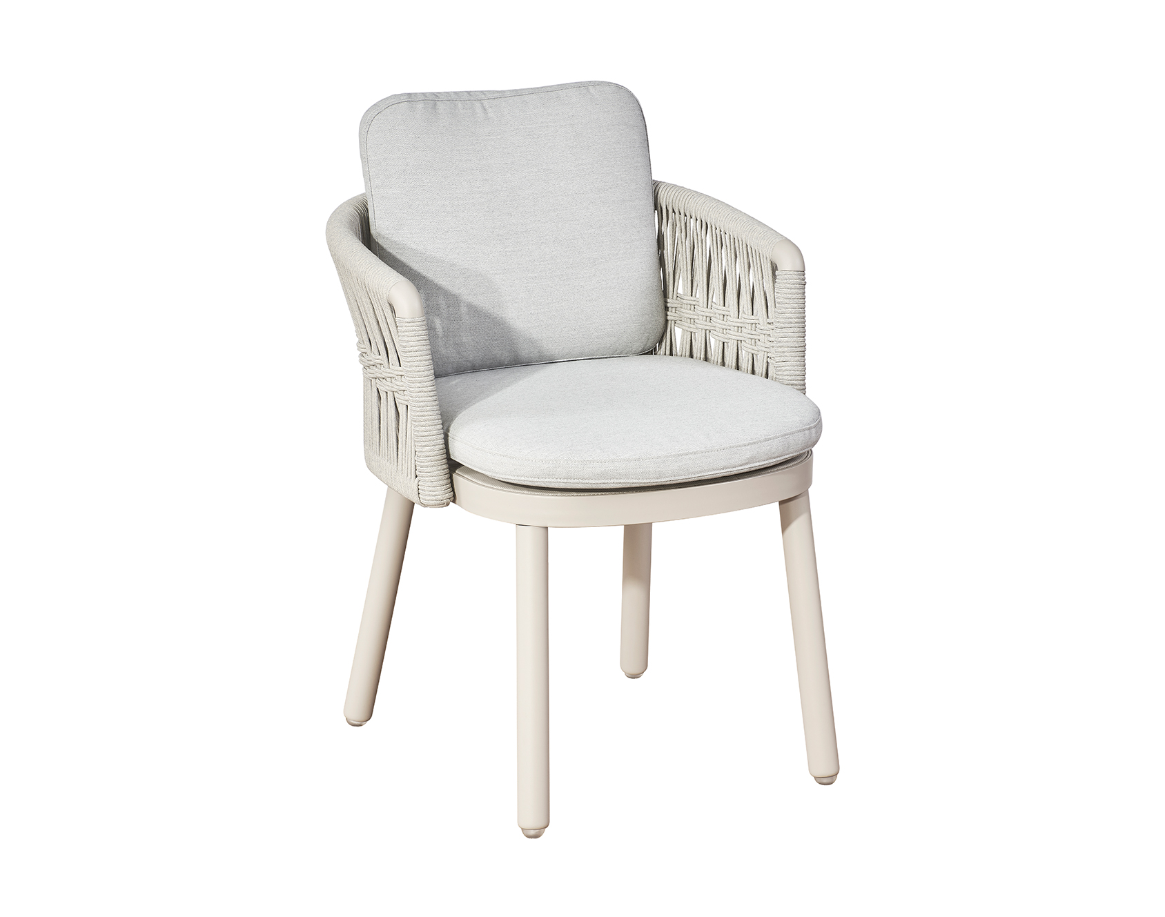 Vatican Series conveys the Oriental spirit of wisdom and elegance with the style of introversion and moderation. The U-shaped backrest and armrest are composed of outdoor woven ropes or wooden texture grilles. Its smooth arc shape, like the robes of ancient scholars, contains elegance and etiquette. Mineral black, dark grey, and other color matching express the Chinese ink painting tone, calm and poetic. This series includes dining chair, lounge chair, and sofa, which can be matched according to different scenes.